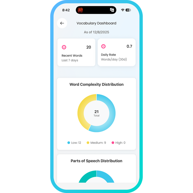 - ✓ Vocabulary growth tracking