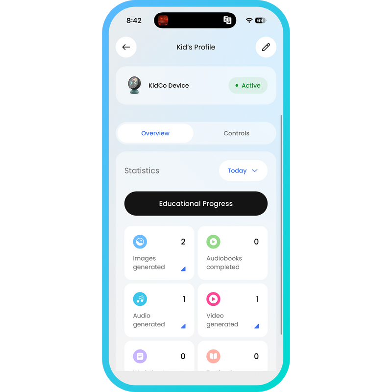 KID is the AI device that turns screen time into creation time. Your child builds stories, composes music, and designs worlds – while you stay in control.
